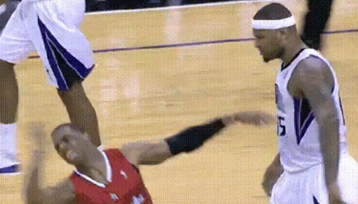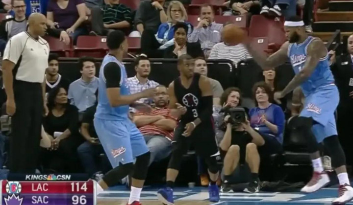 国王时期,还是新兵蛋子的考辛斯回防的时候,保罗故意在考辛斯身上靠了一把,然后以夸张的动作倒地,搞得好像是考辛斯故意把保罗推倒。保罗经常会夸大身体接触,从而影响裁判的判罚。但像这种碰瓷式的搞事,还真不多。
