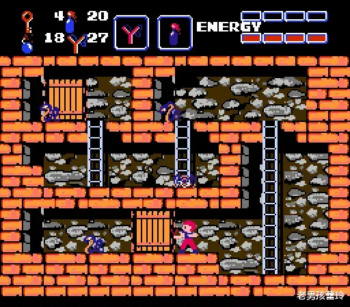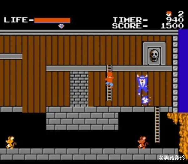 操作上,Mikey可用脚踢、弹弓和炸弹三种方式攻击敌人,其中脚踢作为无次数限制的基础攻击,可用来打晕蓝衣警察,也可以在部分区域探查隐蔽宝藏;弹弓威力大却受弹药数量限制;炸弹是轰开砖墙与牢门的关键,也是击败部分强敌的必备道具,但由于引爆延迟需要提前预判。
