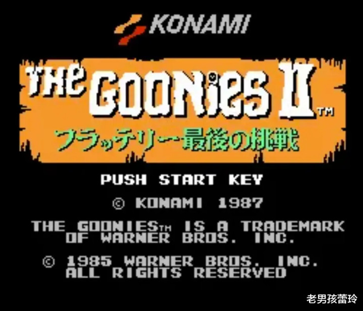 《七宝奇谋》很快成为80年代最受欢迎的青少年冒险影片之一,此时KONAMI抓住契机果断搞定授权,仅用一年时间就将这部电影改编成电子游戏,搬到当时如日中天的家用机FC平台,成就了第一代《七宝奇谋》的横版动作冒险游戏。