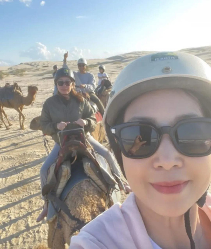 黎芷珊就带头骑第一只骆驼,全程她就负责拍摄,从他们分享出来的片段,可以看出他们都玩的很开心。