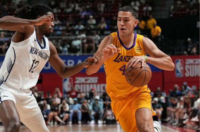在此前的一场NBA拉斯维加斯夏季联赛中,洛杉矶湖人以94比81战胜了新奥尔良鹈鹕。本场比赛后,湖人取得了拉斯维加斯夏季联赛中的首场胜利,目前战绩为1胜1负,而鹈鹕则是遭遇了夏季联赛开始后的两连败,目前战绩为0胜2负。