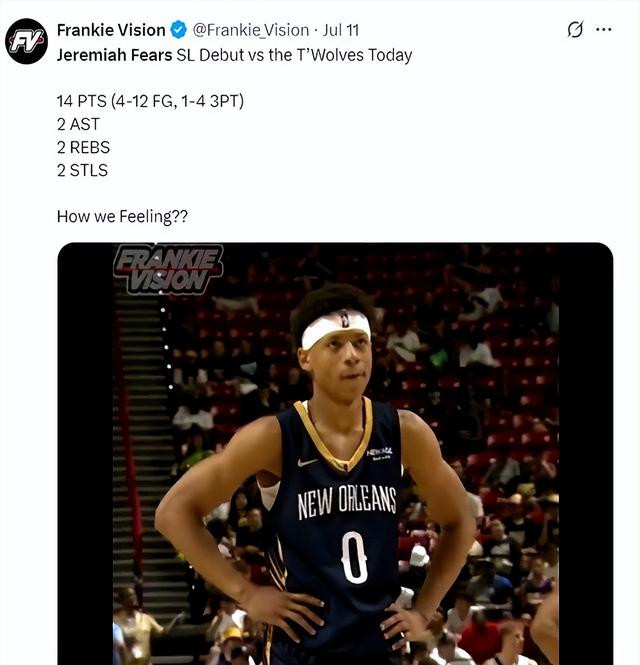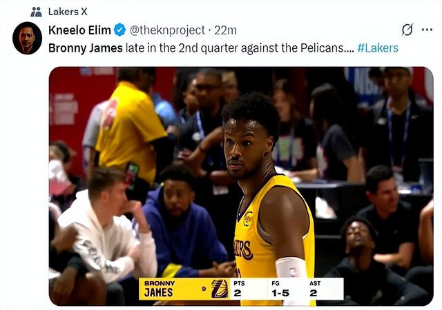 昨晚夏联湖人对鹈鹕,詹姆斯全家坐场边盯着,焦点全在布朗尼和七号秀费尔斯身上。