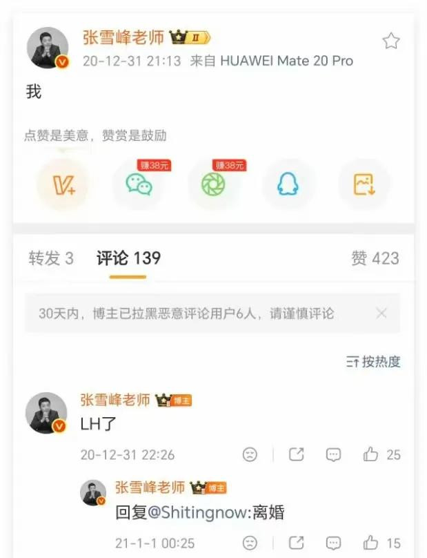 人生分分合合,聚散由不得人,张雪峰和李丽婧相伴走过人生的一段路,已是足矣。