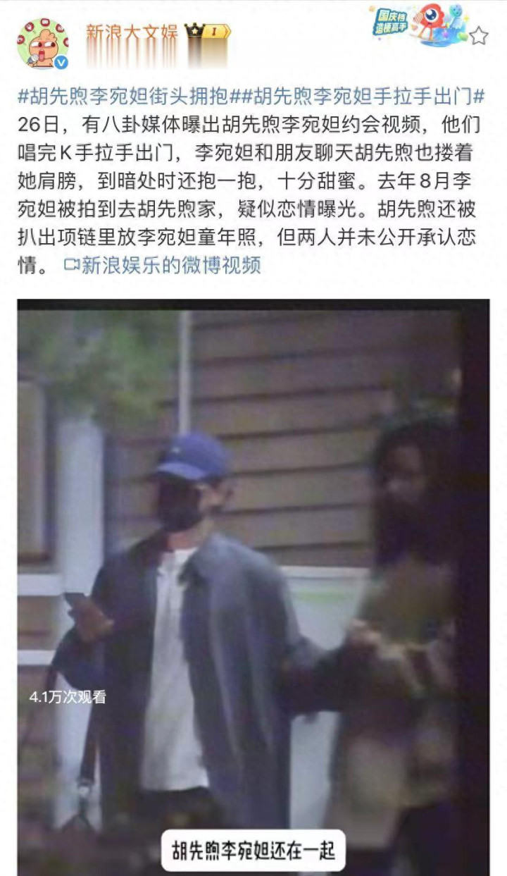 26日八卦媒体报道胡先煦和李宛妲也约会视频,他们一起唱完K手拉手出门,李宛妲和朋友们聊天,胡先煦搂着她的肩膀,到暗处时还拥抱,十分甜蜜。